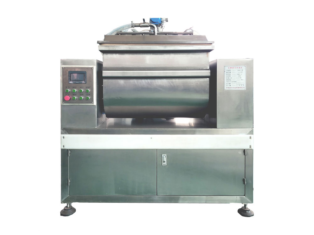 →臥式真空和面機系列  →型號50/75/100/150/200/300型  →功能  主要用來和制餃子皮、餛飩皮、鮮食面、水煮面、掛面等,若更換攪拌器,可適用于速凍行業的各種面食制品的加工。  →特色  1、配備智能觸控顯示屏,參數自由設定,可手動攪拌、可一鍵攪拌。并可根據工藝設定和面時間和真空度。  2、設備由PLC控制,可實現自動起蓋、自動計量加水、自動翻斗、自動進粉、抽真空和面(拌粉)、自動排面功能。  3、獨特的密封結構,有效防止面團受到污染,進一步提高食品安全。  4、和面過程在真空負壓下進行,使面粉中的蛋白質在短時間、充分的吸收水分,形成面筋網絡,從而使面團外表光滑、內部結構均勻,透明度高、口感好。  5、可定制面斗冷卻系統,使成品面團溫度恒定,確保批量生產的產品質量穩定。  6、設備主體采用不銹鋼制造,符合現行有關食品衛生標準。  →主要技術參數產品型號額定容量(kg)攪拌轉速(rpm)主電機(kW)副電(kW)外形尺寸(長×寬×高)ZHW  50型50板式40 攪棒44/887.51.11470×932×1483ZHW  75型75板式40 攪棒44/88111.851440×890×1655ZHW 100型100板式40 攪棒44/88111.851440×890×1794ZHW 150型150板式40 攪棒44/88221.851764×1070×1815ZHW 200型200板式40 攪棒44/88221.851964×1070×1815ZHW 300型300板式40 攪棒44/883432074×1170×2022板式攪拌器滾杠-真空油條包子狼牙棒攪拌器