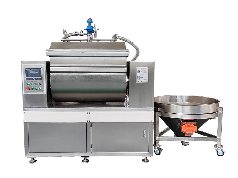→臥式真空和面機系列  →型號50/75/100/150/200/300型  →功能  主要用來和制餃子皮、餛飩皮、鮮食面、水煮面、掛面等,若更換攪拌器,可適用于速凍行業的各種面食制品的加工。  →特色  1、配備智能觸控顯示屏,參數自由設定,可手動攪拌、可一鍵攪拌。并可根據工藝設定和面時間和真空度。  2、設備由PLC控制,可實現自動起蓋、自動計量加水、自動翻斗、自動進粉、抽真空和面(拌粉)、自動排面功能。  3、獨特的密封結構,有效防止面團受到污染,進一步提高食品安全。  4、和面過程在真空負壓下進行,使面粉中的蛋白質在短時間、充分的吸收水分,形成面筋網絡,從而使面團外表光滑、內部結構均勻,透明度高、口感好。  5、可定制面斗冷卻系統,使成品面團溫度恒定,確保批量生產的產品質量穩定。  6、設備主體采用不銹鋼制造,符合現行有關食品衛生標準。  →主要技術參數產品型號額定容量(kg)攪拌轉速(rpm)主電機(kW)副電(kW)外形尺寸(長×寬×高)ZHW  50型50板式40 攪棒44/887.51.11470×932×1483ZHW  75型75板式40 攪棒44/88111.851440×890×1655ZHW 100型100板式40 攪棒44/88111.851440×890×1794ZHW 150型150板式40 攪棒44/88221.851764×1070×1815ZHW 200型200板式40 攪棒44/88221.851964×1070×1815ZHW 300型300板式40 攪棒44/883432074×1170×2022板式攪拌器滾杠-真空油條包子狼牙棒攪拌器